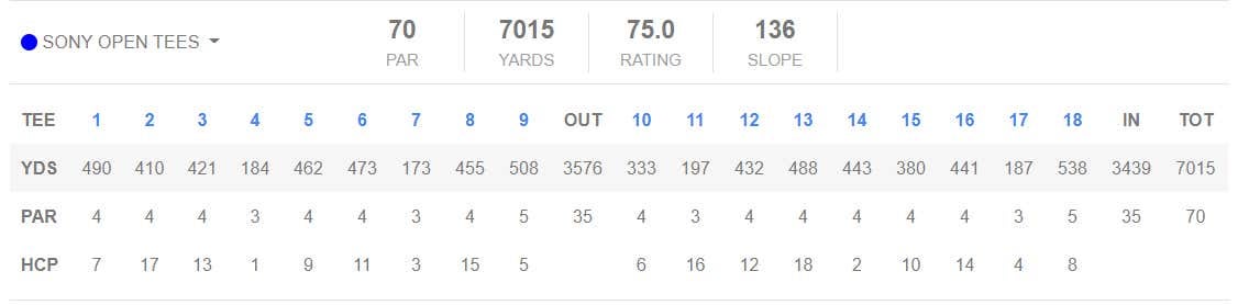 Waialae Country Club is a par 70 measuring just a hair over 7,000 yards. As evidenced by those winning scores, it's not a terribly challenging golf course. Between Waialae and what we see every year at Kapalua, it's safe to say the Hawaii Swing is a cakewalk for these guys.