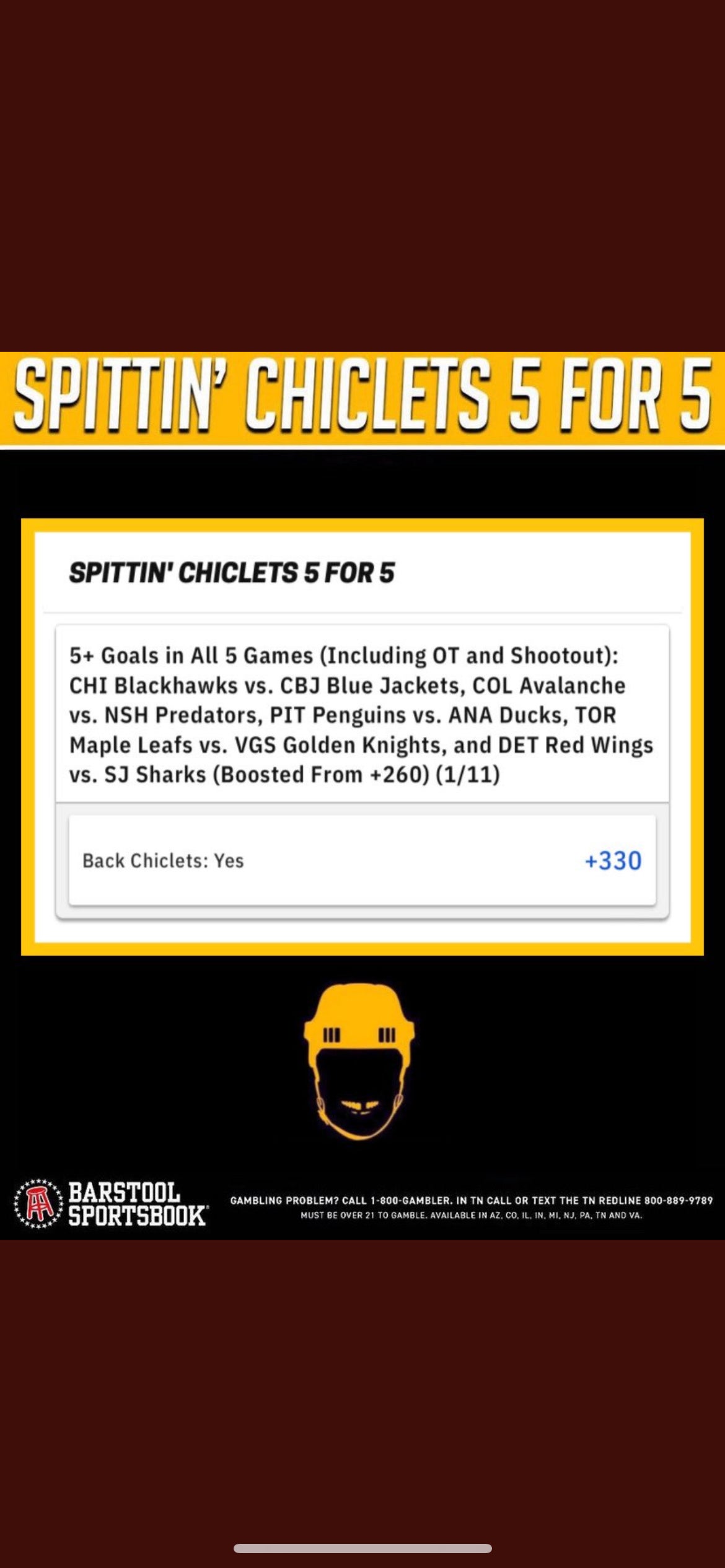 Get over to the Barstool Sportsbook, go under the Exclusives page and ride with the Chiclets Crew on this amazing boost. My favorite part is that it takes all the thinking out of the night as it covers five games from 7 pm ET to the late-night hours when I should be waking up but instead I’m going to bed because I needed to see the boost through for the crew.