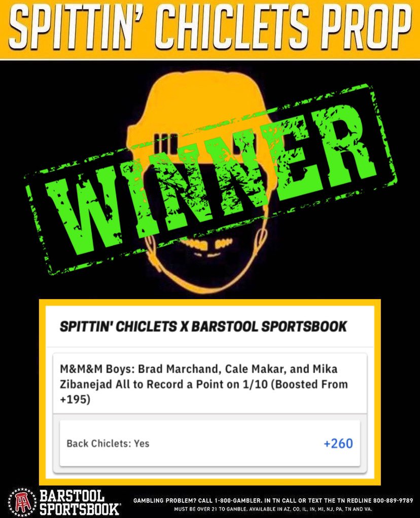 Another round goes to Chicletsin the brawl for who wins the most Barstool Sportsbook boosts. Is it getting too easy? Maybe but it's a crime to let a sucker keep their money. Not only did the players get a point but 2 of them also sniped to make sure no funny business went on. I am going to start putting some winnings on any scorer to really go for the throat. Barstool sportsbook has been warned officially!!