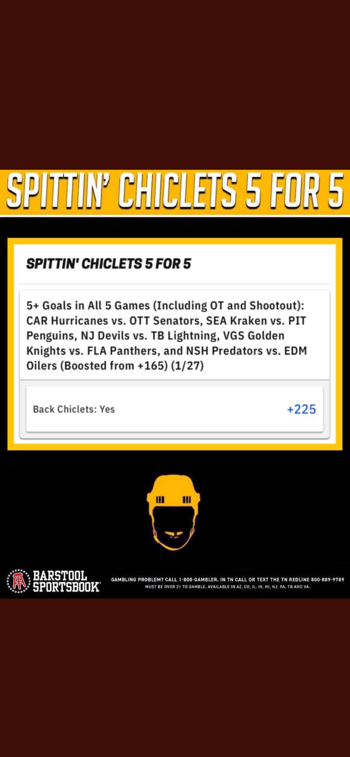 Let's make it two in a row and continue to have the Spittin Chiclets Boost be the hottest bet in sports. Find this under the Exclusives page on Barstool Sportsbook and ride with the Chiclets Crew.