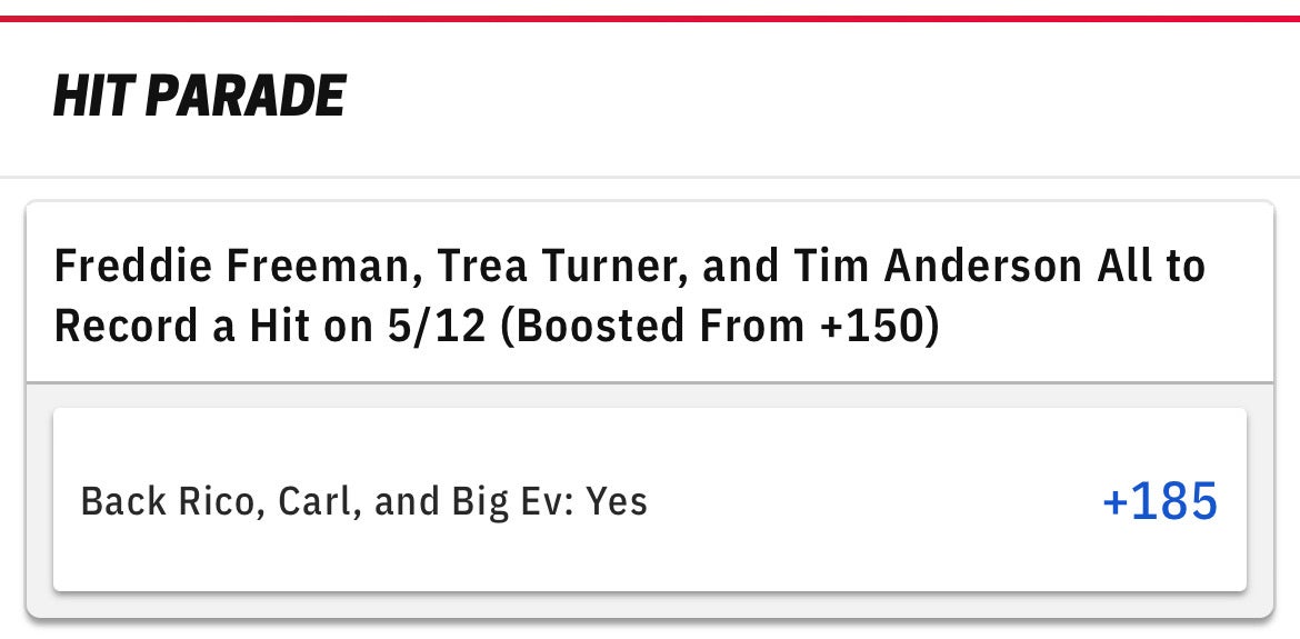 The Hit Parade has been priced… it's Tim Anderson, Trea Turner, and Freddie Freeman. It's +4.2 units YTD and I Love it as always tonight. Get involved, send us your bet slips and enjoy the cash.