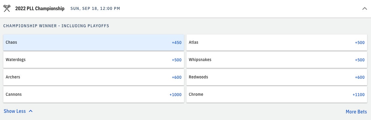 I'd probably hold off on taking that Chaos future for a couple weeks. Like I mentioned, half of their roster is still playing in the NLL right now so they might not get off to the hottest start. Redwoods are a good value pick right now but there are 6 teams that are a legitimate threat to win a championship this summer so I don't think you can go wrong with any of them.