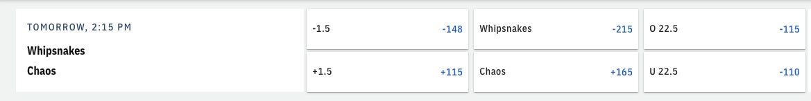 Saturday, 2:15pm // Whipsnakes vs Chaos // ESPN+