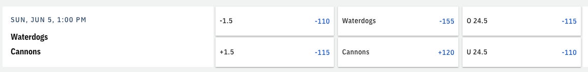 Sunday, 1pm // Waterdogs vs Cannons // ESPN+