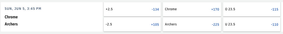 Sunday, 3:45pm // Chrome vs Archers // ESPN+
