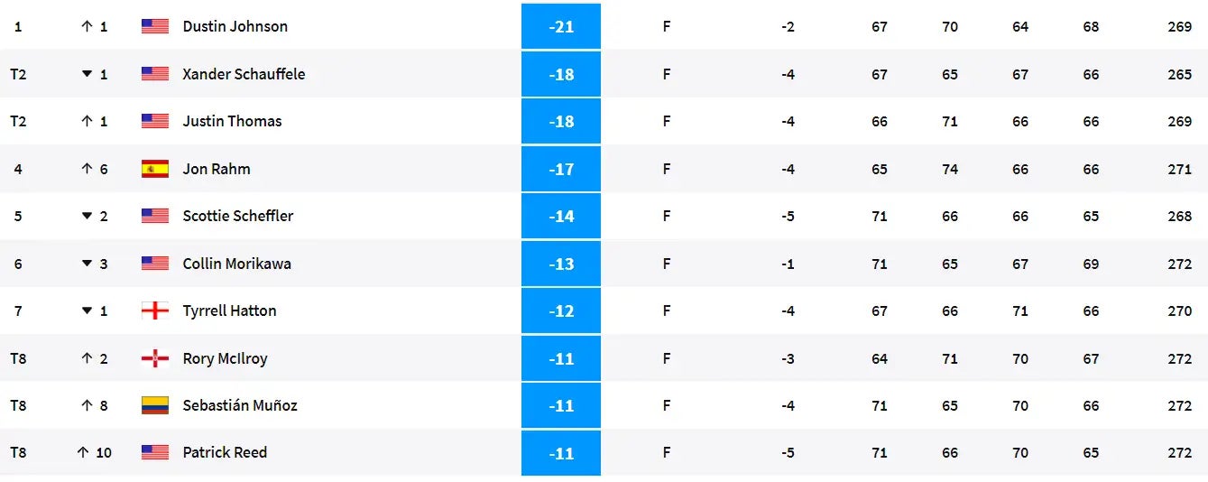 Last year, Patrick Cantlay was top dog at -10 after winning the BMW and was able to parlay that into a narrow one-stroke win over Jon Rahm, who had started at -6. Rahm (along with Kevin Na) shot the lowest 72 hole score of the week but came up just short. Turns out that COVID withdrawal when he had the Memorial Tournament in the bag cost him the points he would've needed to have started the week close enough to catch (and pass) Patrick Cantlay. Pretty ridiculous if you ask me.
