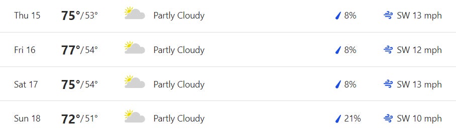 Phenomenal weather in Northern Cali. Probably even see a few QZ's out there in the mornings. I think the perfect golf round is one where you wake up and it's brisk and it warms up as the morning moves along. Pop the hoody or QZ off around hole 7 and that's the sweet spot.