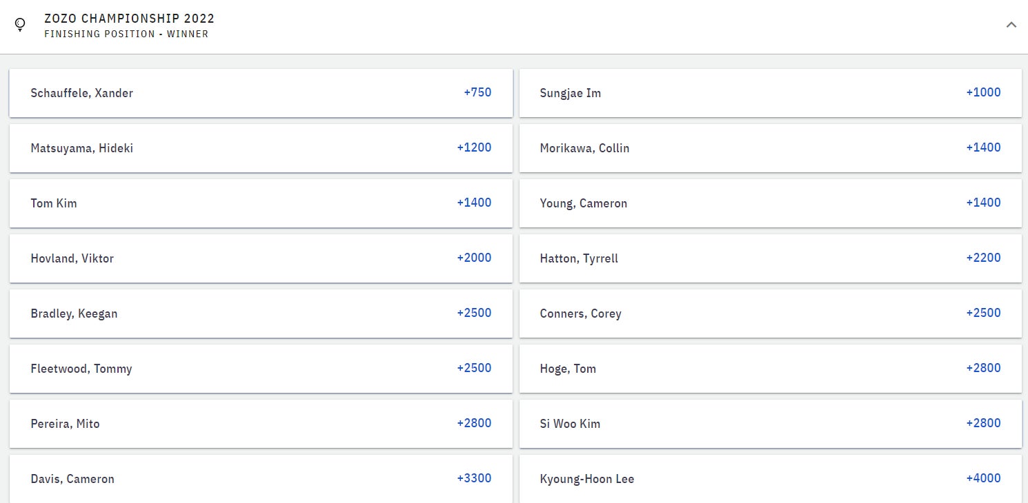 Xander Schauffele is the top ranked player in this field (#6 in OWGR) and is the betting favorite at +750 at the Barstool Sportsbook. Most notably, the X man won Olympic gold over in Japan at Kasumigaseki Country Club last year, which was designed by the same guy who designed Narashino (Kinya Fujita).