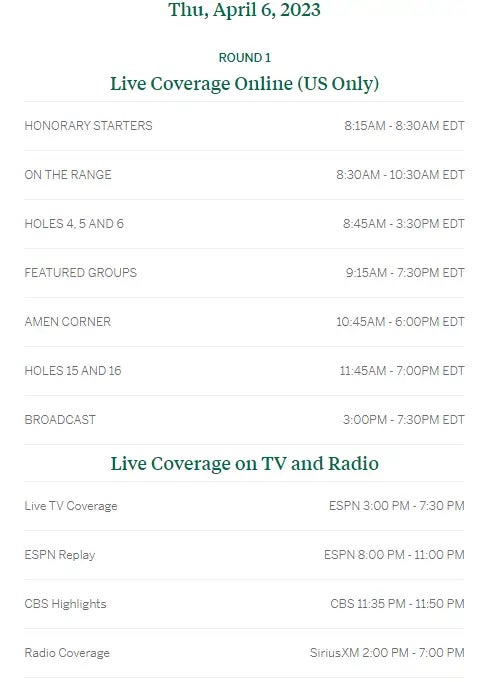 Tons of coverage on the early end at Masters.com and ESPN+, followed up by full coverage on ESPN at 3. You'll be able to watch every shot that each of your favorited players hit on the Masters.com leaderboard too. They usually have some fun new wrinkles to what they offer online, so that's something to look forward to.