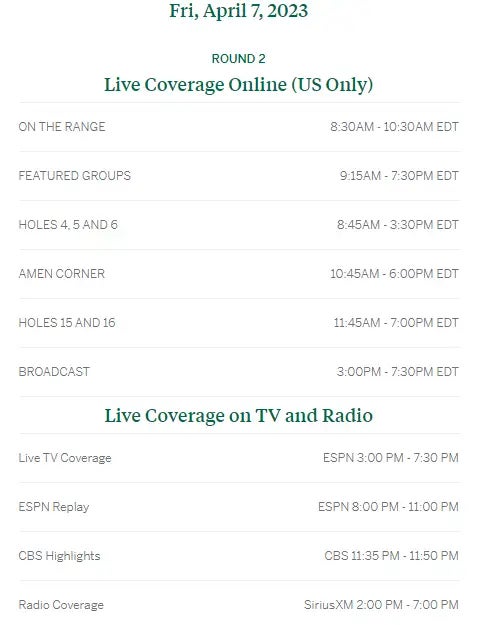 NOTE: Tweak these times backwards by a half hour. They're starting earlier to try to beat the weather.