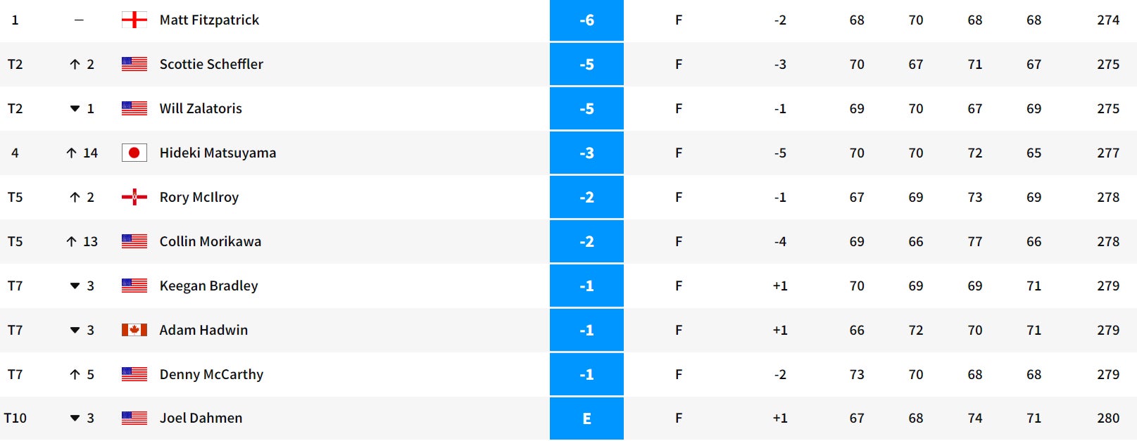 Surprising, given he was so steady with the flatstick last year. Koepka is up there at +850 given his re-discovered god status at majors. Rahm won at Riv earlier this year and quite simply, he's Jon fucking Rahm. Hovland is hot given his win at Jack's place and strong performance at the PGA. Rory seems to be trending back up after finding himself at the mix last week in Canada. Cantlay, Schauffele, and Homa have the local storyline. There's a lot to like here.