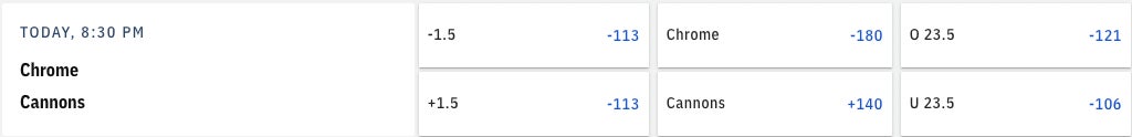 Friday, 8:30pm // Chrome vs Cannons // ESPN+
