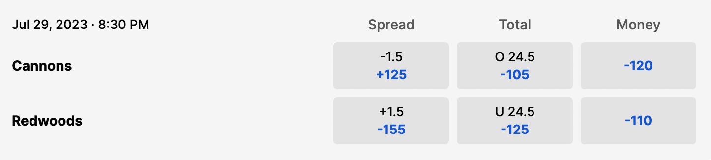 Saturday, 8:30pm // Cannons (3-2) vs Redwoods (3-2) // ESPN+