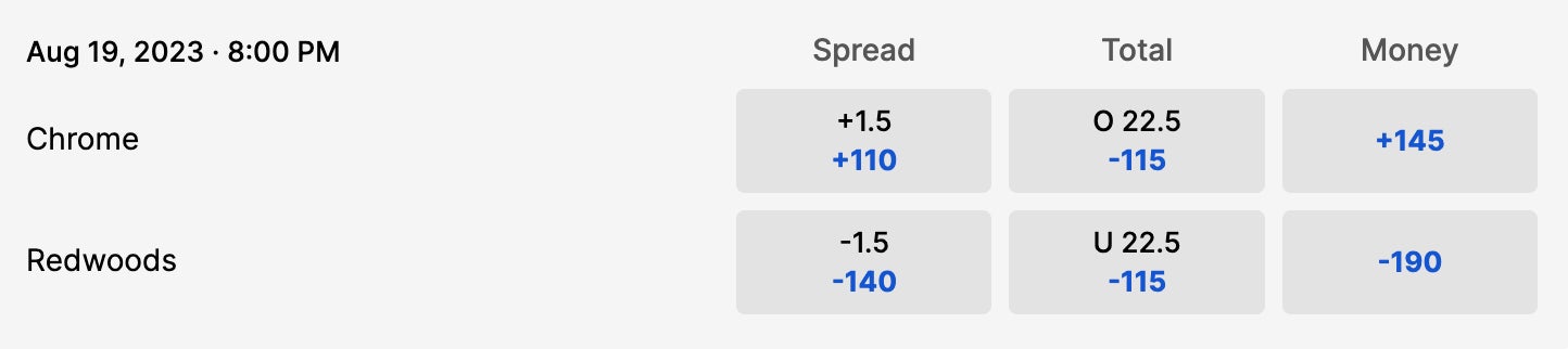 Please, just end the Chrome already. Redwoods -1.5 and the Under.