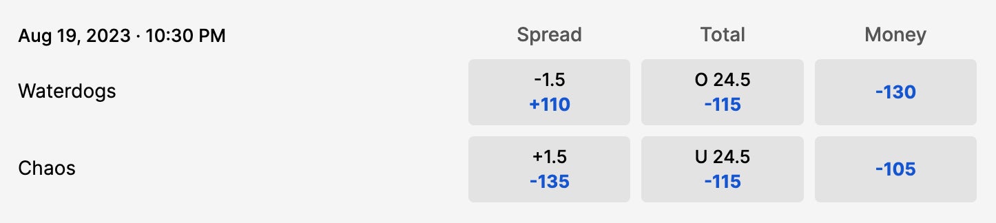 Saturday, 10:30pm // Chaos (4-4) vs Waterdogs (5-3) // ESPN+