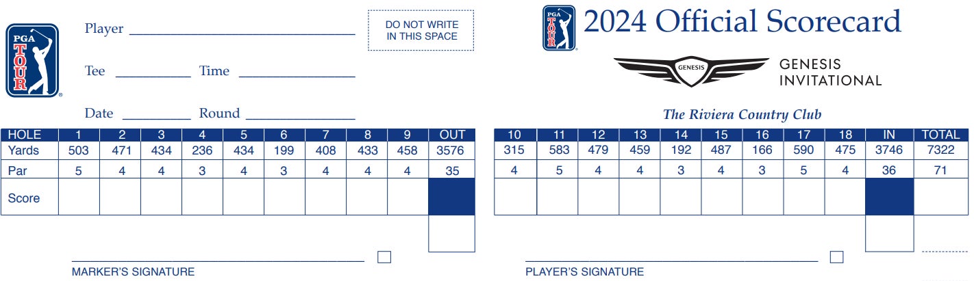 Riviera CC is a par 71 playing at just over 7,300 yards. That may not sound like a terribly long course for a par 71 relative to some other tracks on Tour, but that number is shortened considerably by the 1st and 10th holes. The 1st hole is the easiest par 5 on the entire Tour every single year. There's really no reason at this point for it not to be a par 4 with the way these guys hit it off the tee. The ravine that cuts off the fairway at about 320 yards keeps players from getting everything they can off the tee, but that hasn't stopped them from birdieing it more than half the time.