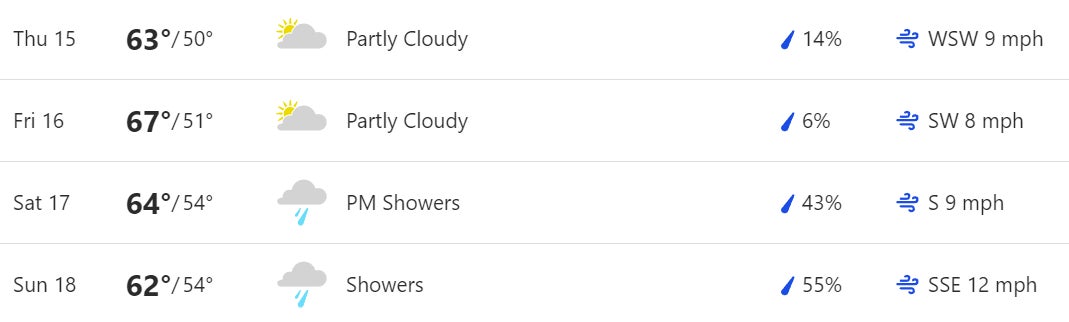 Could be a bit chilly out there in the morning, and a little wet over the weekend. Good news is with a smaller field they can more easily manage tee times and fit in all the golf without any marathon days. That way we don't end up with a cranky Zach Johnson (not in this field) whining about fans and playing 54 holes in two days.