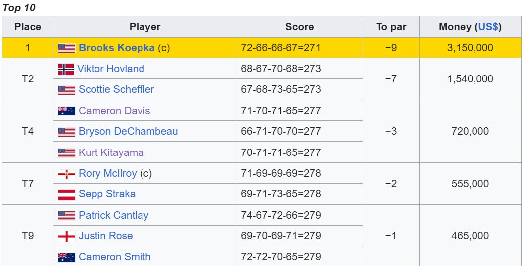 Last year it was Brooks Koepka reaching the mountaintop yet again after some tough years for his 5th major championship. It was the type of Sunday where it looked like we were going to get great drama, but Koepka just played solid mistake-free golf on the back 9 and nobody was able to really make a charge at him. Scottie fired a final round 65 to put some pressure on him and it easily could've been Viktor Hovland's tournament given he was one back of Koepka heading into Sunday, but his hopes were dashed when he failed to get out of a fairway bunker on 16 and made double bogey to Koepka's birdie. Ballgame.