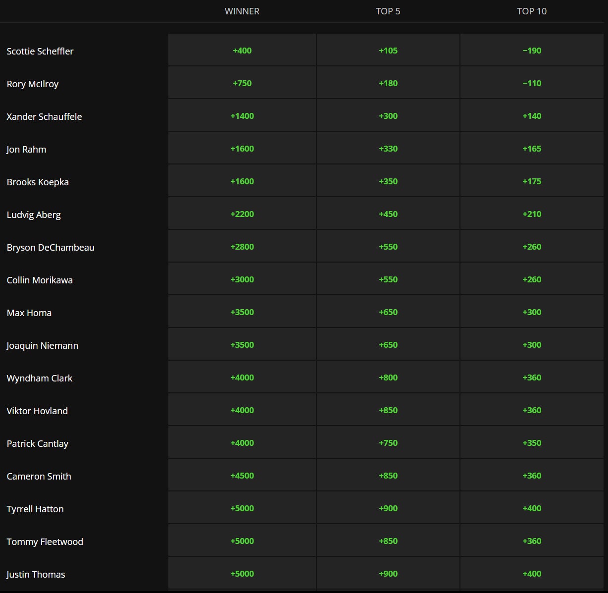 Scottie Scheffler is an obvious favorite at +400 at the Draftkings Sportsbook #DKPartner. Rory is coming off a win both last week and last time this tournament was played here, so he's closed the gap considerably to +750. As far as narratives go, it seems to be those two guys and everybody else.